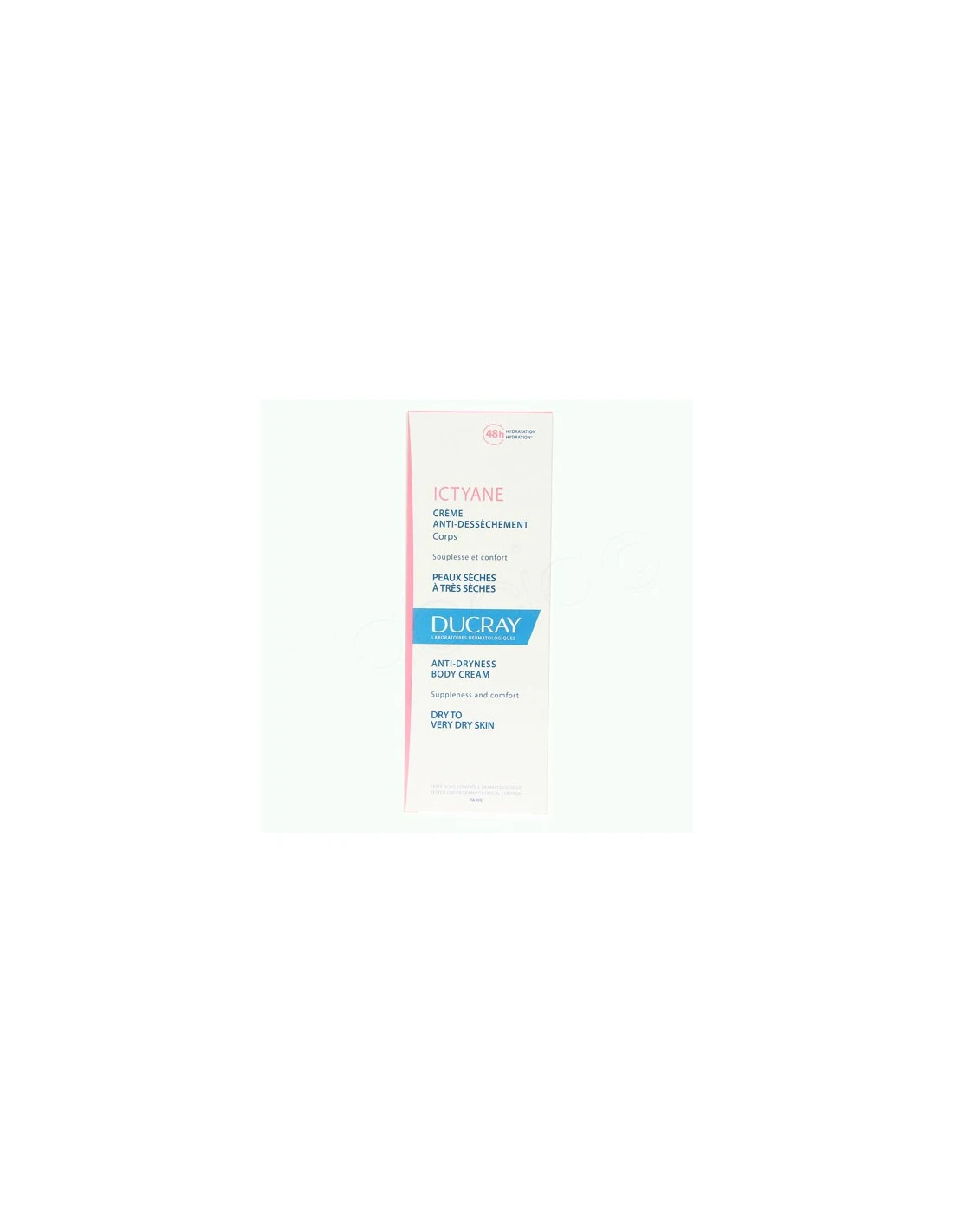 La crème anti-dessèchement corps Ictyane de Ducray est conseillée pour apporter souplesse et confort à la peau sèche ou très sèche au quotidien. Elle remplace désormais la crème émolliente Ictyane.