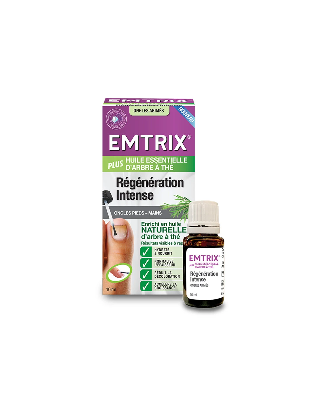 Emtrix Régénération Intense Ongles Abîmés Plus huile essentielle d’arbre à thé est un nouveau produit multifonction d’Emtrix® pour le traitement des ongles abimés.