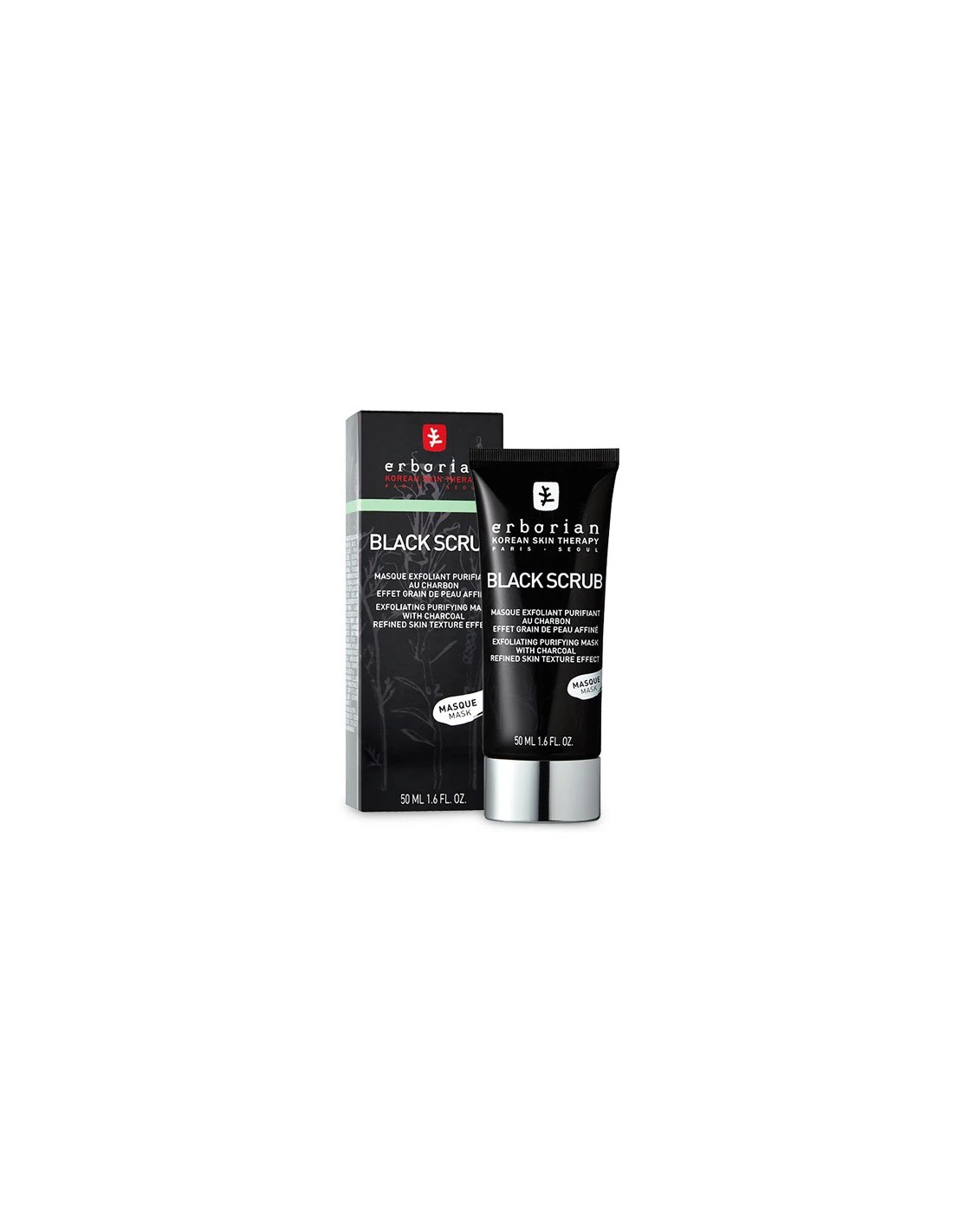 Formulé à partir de poudre de Charbon, connu en Corée pour ses vertus matifiantes, et de micro fibres de coton, Erborian BLACK SCRUB est un masque purifiant exfoliant à triple action. Ce masque noir Erborian BLACK SCRUB contribue à affiner le grain de peau et à atténuer les zones de brillance pour une peau comme purifiée, plus lisse, visiblement plus lumineuse, avec un fini mat.