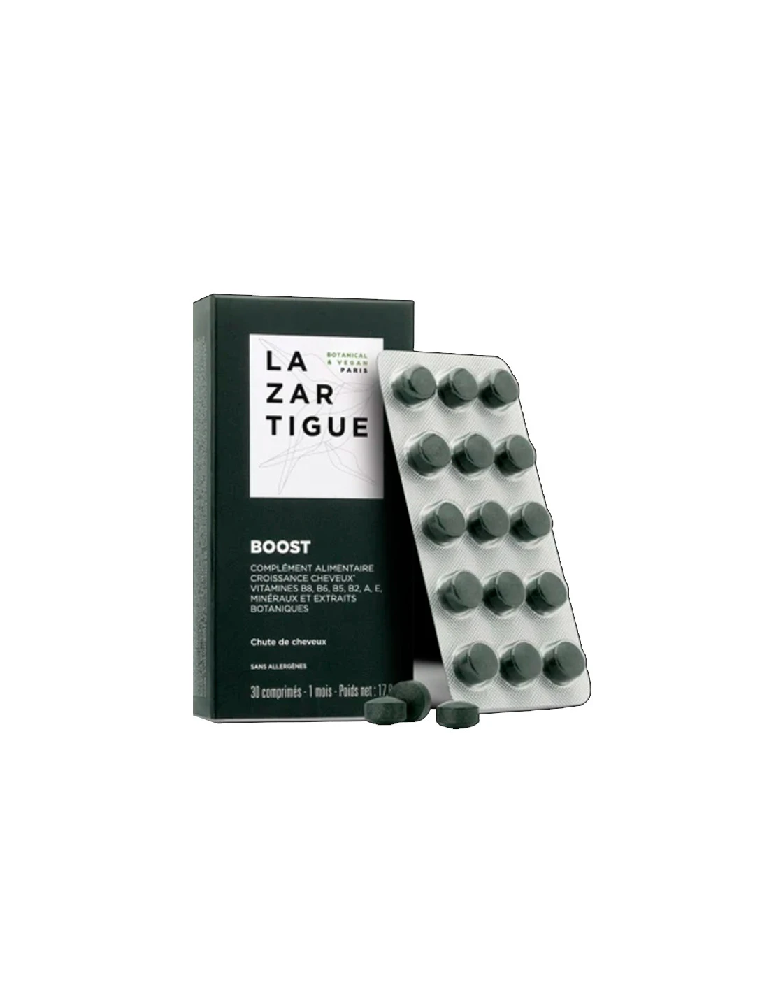 La formule des comprimés Boost de Lazartigue est vegan et contient :