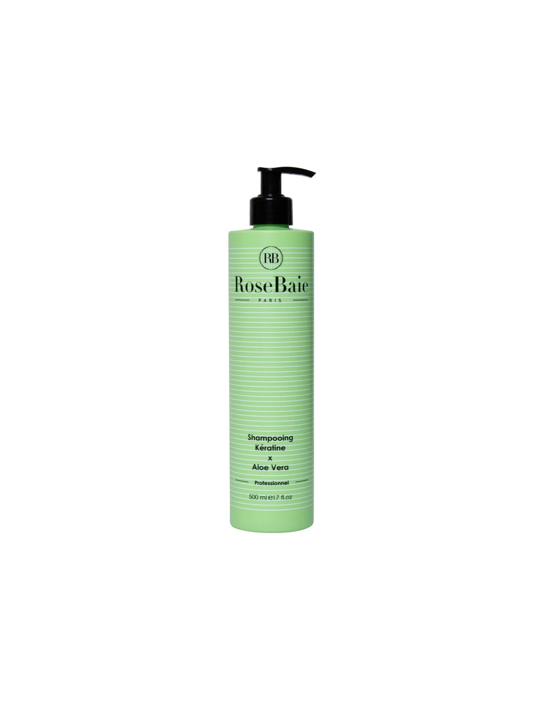 Le shampooing RoseBaie à la kératine et à l’Aloe vera élimine les impuretés, équilibre le pH des cheveux, hydrate et discipline afin de retrouver un éclat naturel pour les cheveux secs comme les cheveux gras. Appliquer des racines aux pointes sur cheveux mouillés. Rincer à l’eau.