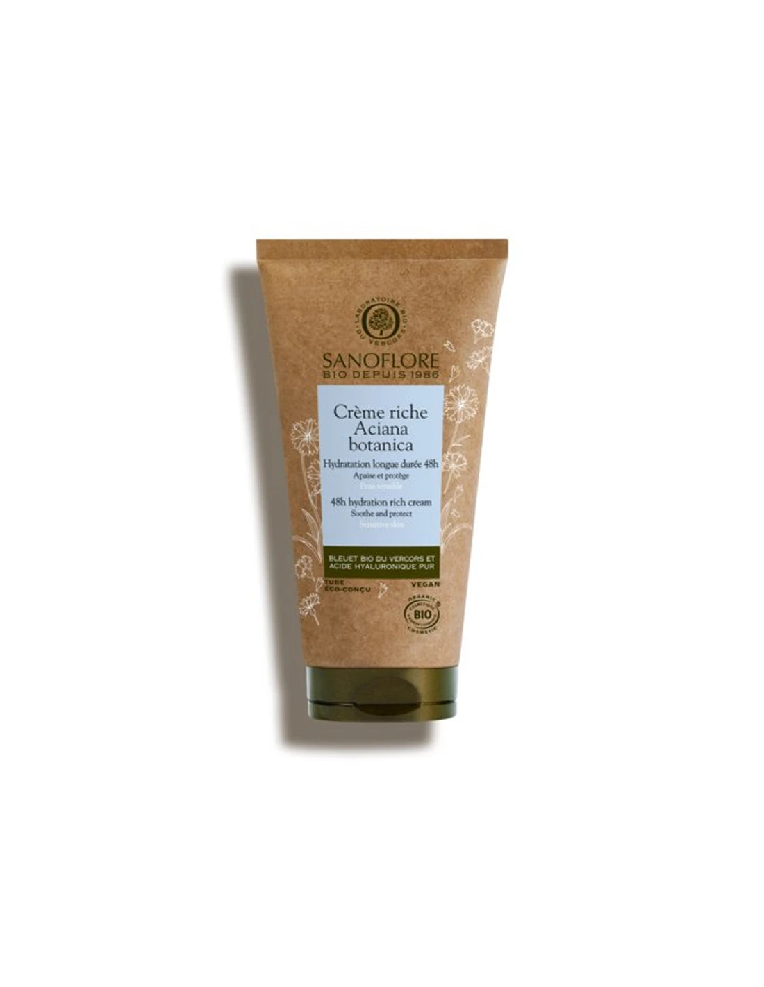 La Crème Riche Aciana botanica Sanoflore est un soin hydratant visage et contour des yeux bio qui apaise, protège et hydrate la peau jusqu’à 48h. Convient à la Peau normale, peau sèche, peau sensible et peau déshydratée. Testée sous contrôle dermatologique et ophtalmologique.
