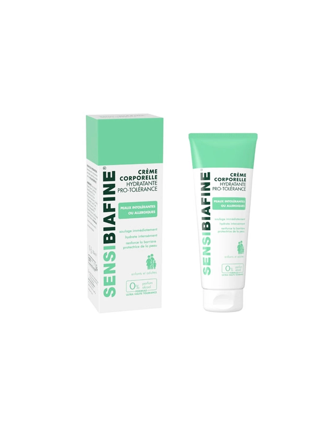 Cette crème corporelle hydratante Pro-Tolérance SensiBiafine hydrate, soulage et renforce les peaux intolérantes ou allergiques de toute la famille, dès 3 ans.