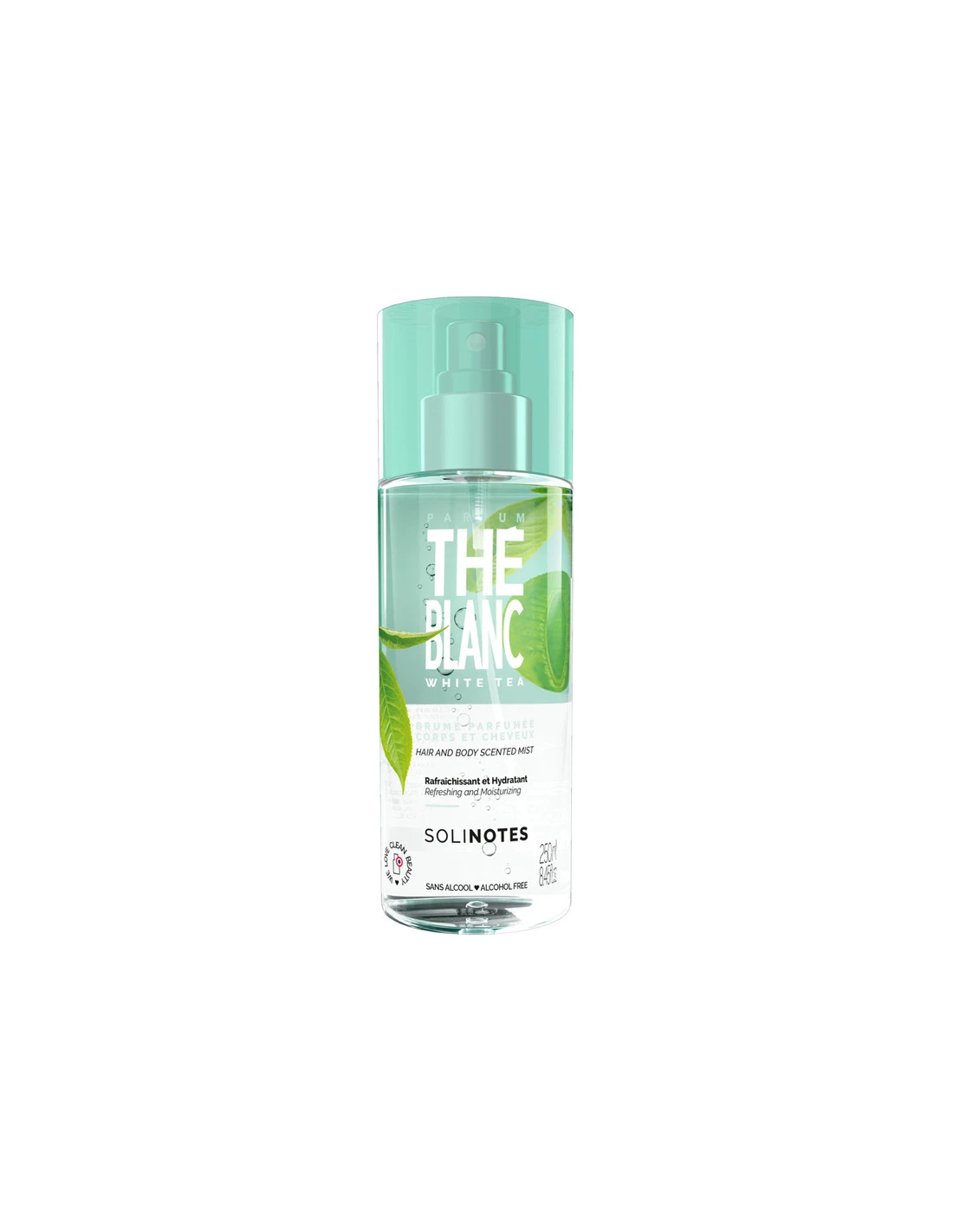 La brume Thé Blanc Solinotes s’applique sur la peau du corps et sur les cheveux.