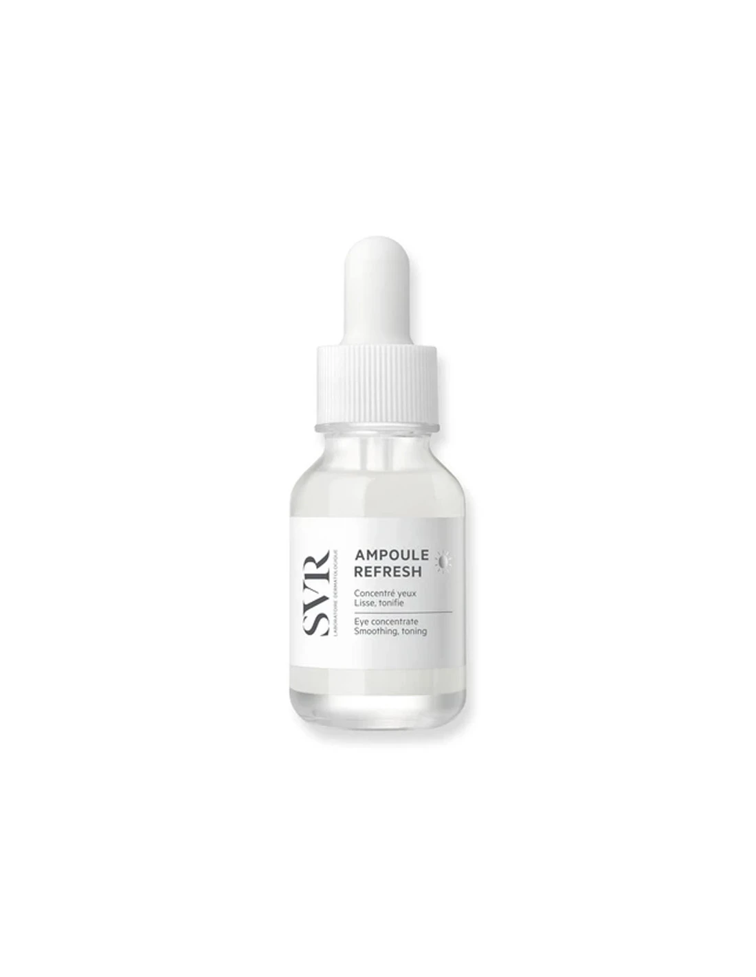 SVR Ampoule Yeux Refresh a été imaginée et développée comme une véritable expérience. Sa formule sérum ultra fraîche concentrée en actifs associée à son packaging innovant massant agit directement sur les cernes, les poches, les rides et ridules. Formulée avec 90% d’ingrédients d’origine naturelle, sa formule experte et technique puise sa force grâce à :