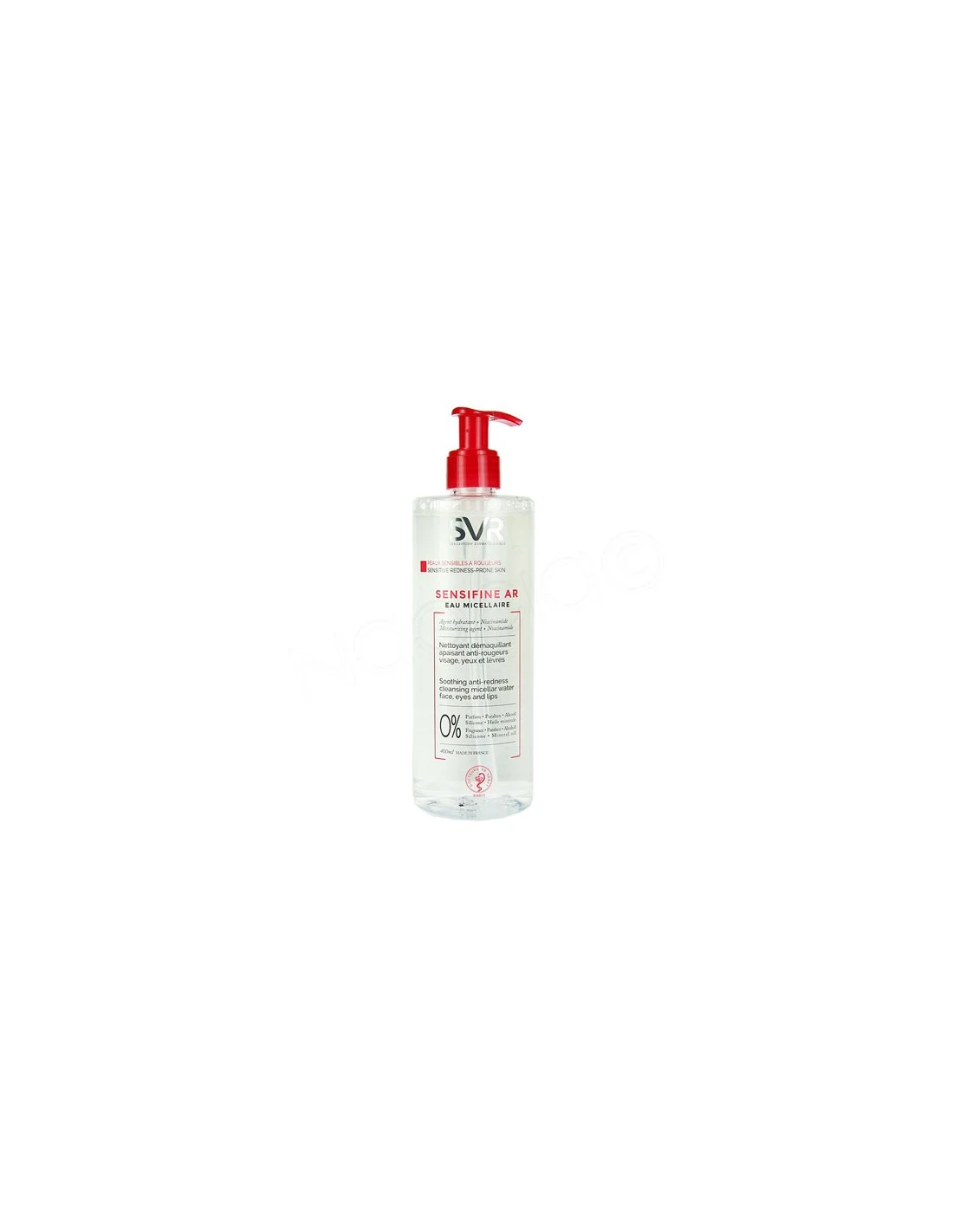 SVR Sensifine AR Eau Micellaire se compose de tensio-actifs ultra-doux afin d’éliminer les impuretés et le maquillage tout en douceur, de Niacinamide aux vertus apaisantes et dagents hydratants.