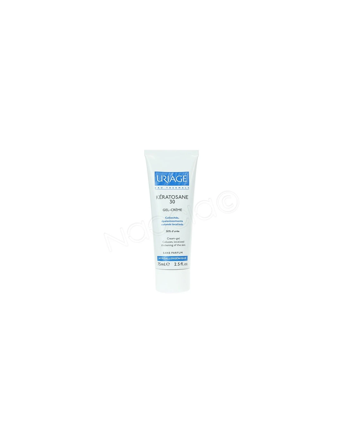 URIAGE Kératosane© 30 Gel-crème est composé d’actifs kératolytiques et de 30% d’Urée aux propriétés apaisantes et hydratantes. Très riche mais non gras, ce soin pour le corps traite activement l’épaississement de la peau, impliqué dans la formation de corne, durillons, cal, oignons, et crevasses. Texte original Archange-pharma – Reproduction interdite. Présentes principalement au niveau des pieds, des coudes, des genoux et du cuir chevelu, les callosités sont traitées efficacement avec cette crème hydratante sans paraben, sans parfum et hypoallergénique. La peau rugueuse retrouve sa souplesse, son élasticité pour un confort optimal.